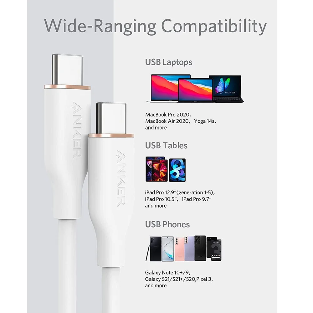 ANKER USB-C TO LIGHTNING 100W , 3FT WHITE